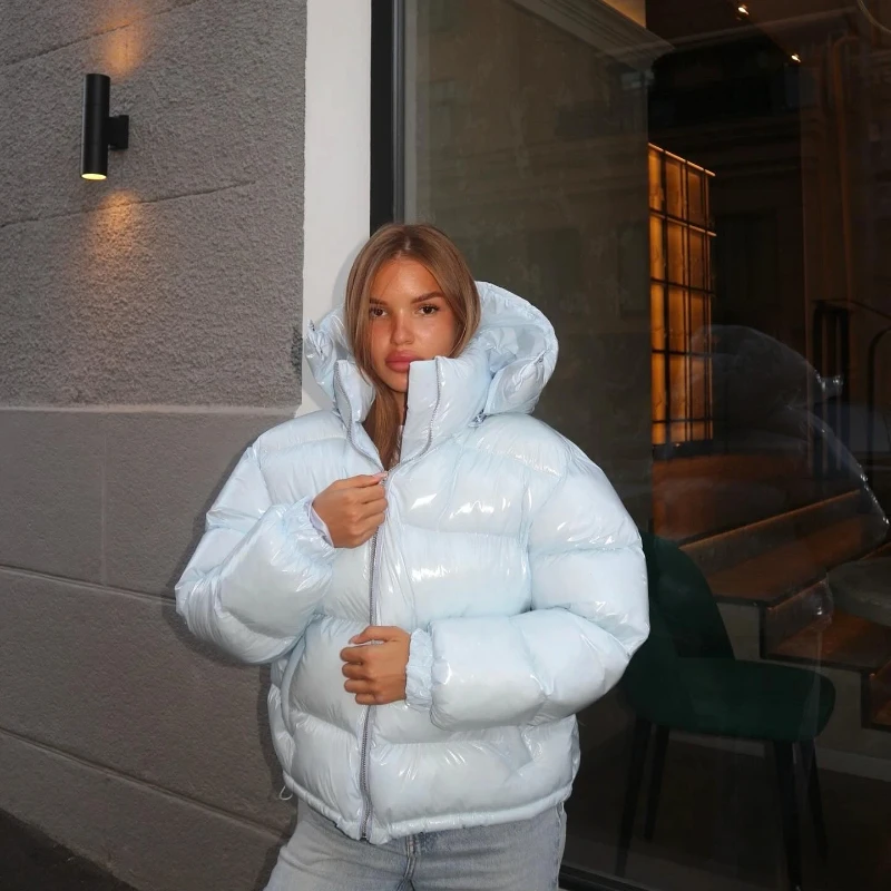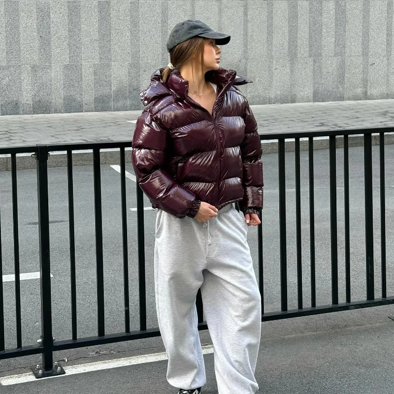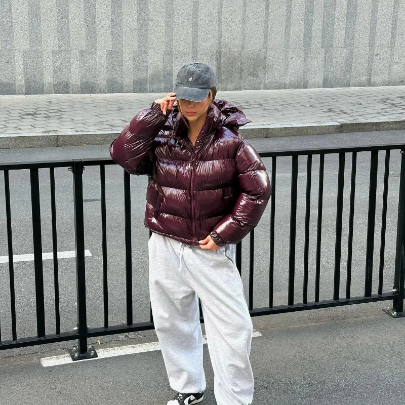 Featuring a chic solid pattern and a stand-up collar, this parka blends fashion with functionality.